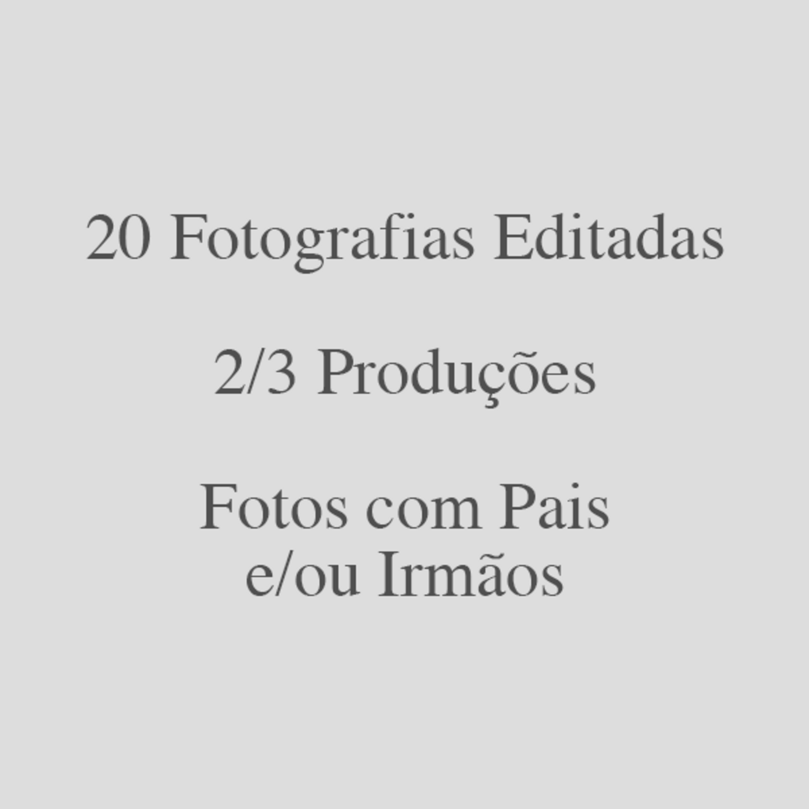 5. Prazos de entrega: Após a sessão será criada, no prazo máximo 15 dias, uma galeria online de provas onde as famílias poderão efetuar a sua seleção. Confirmada a seleção, as fotografias editadas serão enviadas via download no prazo máximo de 30 dias.