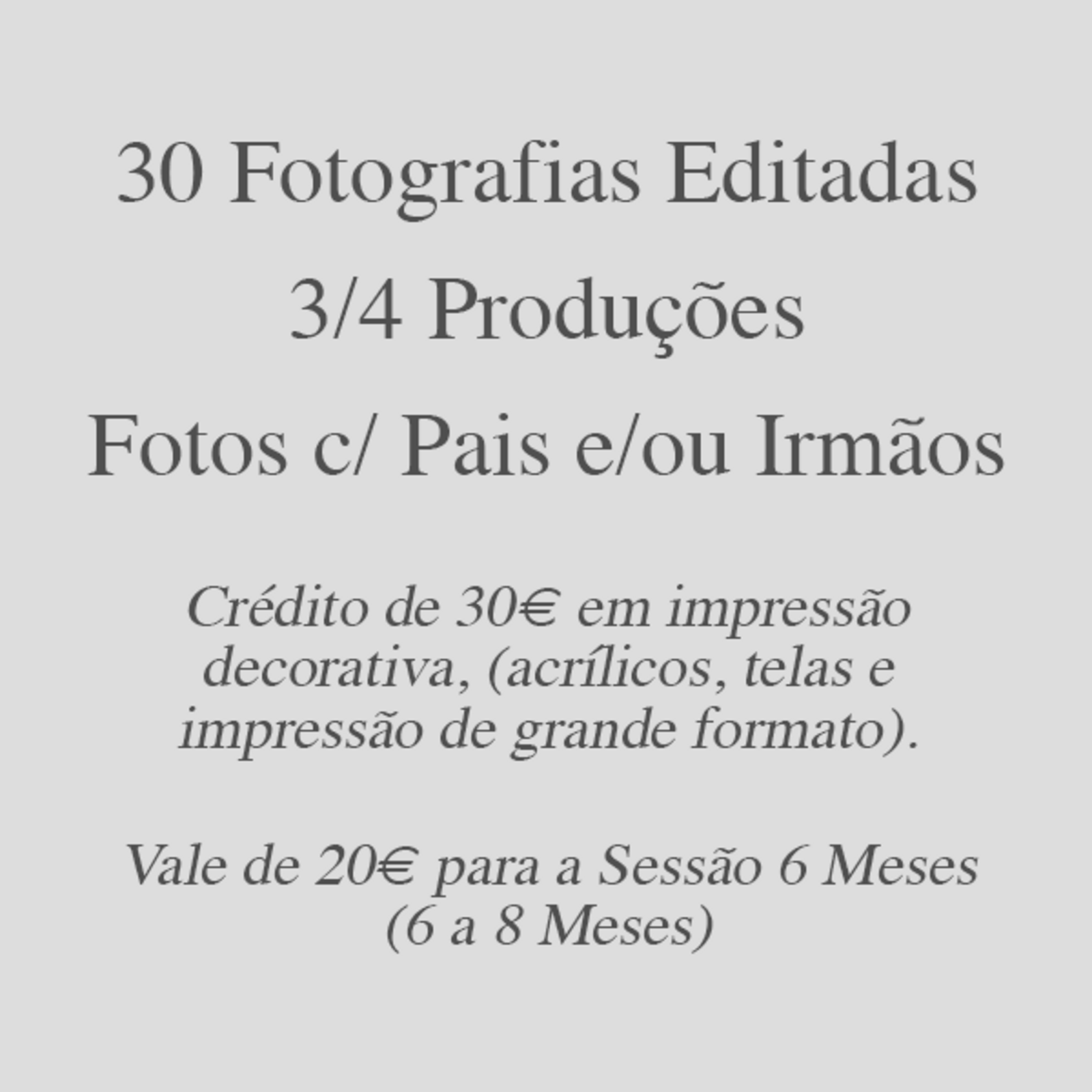 7. O crédito de impressão é válido por 1 mês, após a seleção das fotografias. Aplica-se a toda a impressão decorativa, como acrílicos, telas e impressão de grande formato.